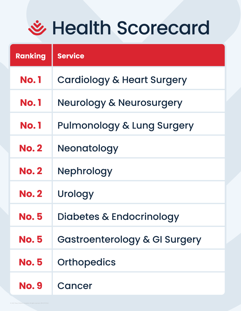 Fill in your health scorecard at Texas Children's. Browse a full list of our programs and services.